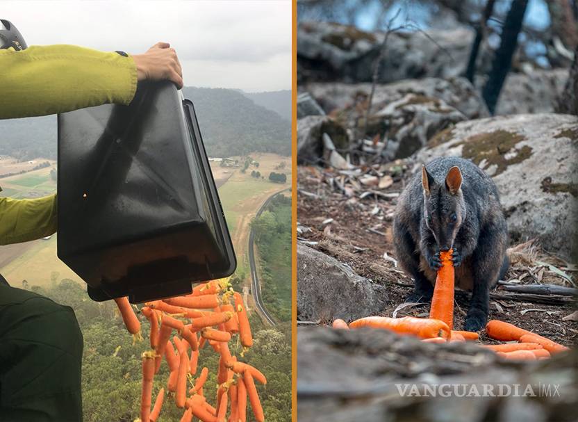 De acuerdo con el ministro de Nueva Gales del Sur, Matt Kean, miles de zanahorias y patatas dulces fueron cargadas en helicópteros para ser arrojadas desde el aire a los animales afectados.