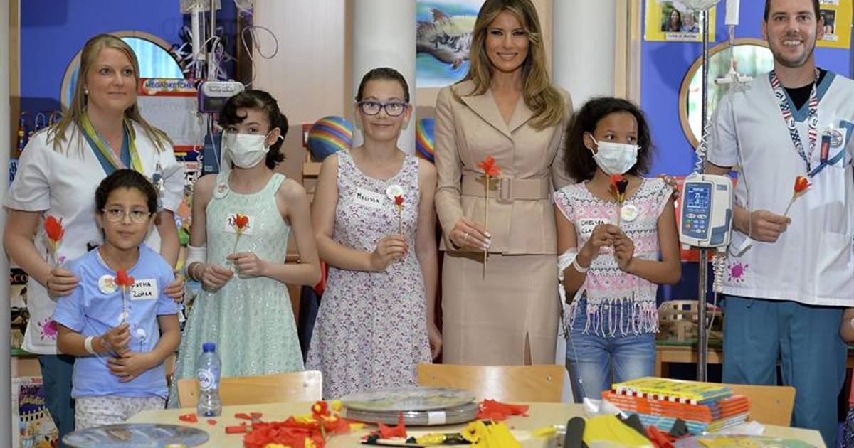 Visita Melania Trump a niños enfermos en Bruselas