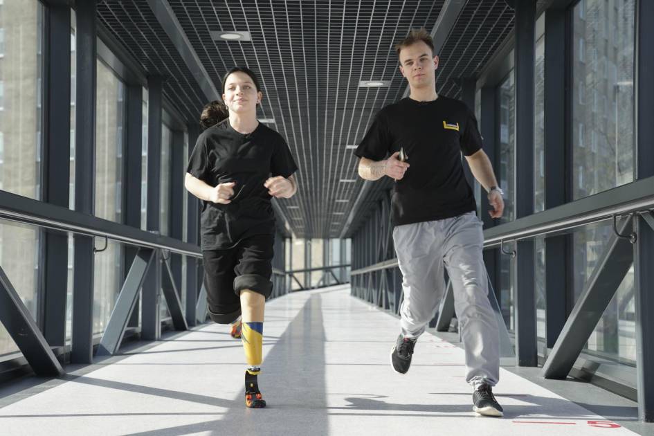 “Al principio no podía correr ni 200 metros. Estamos avanzando paso a paso”, explica otra entrenadora, Anastasia Matviok, que guía a Yana en una serie de ejercicios.
