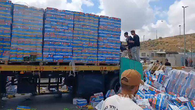 En redes sociales circularon videos en los que se ve a los colonos saqueando y destruyendo costales de harina de trigo, y prendiendo fuego a los camiones del convoy, indicó el portal thenationalnews.com de los Emiratos Árabes Unidos.