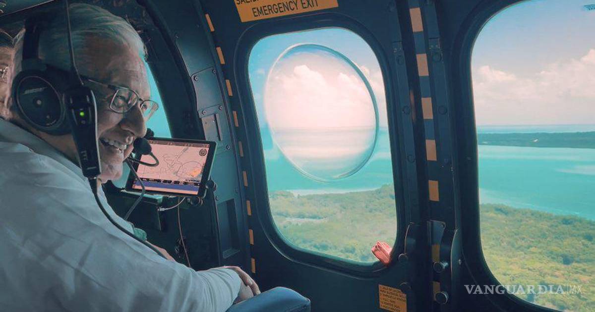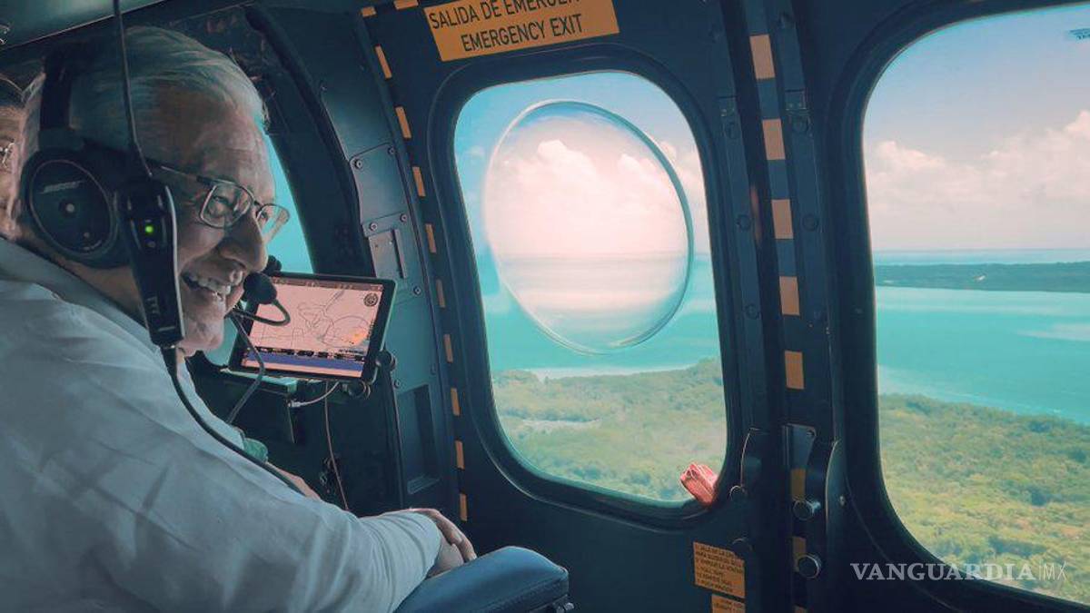 Además, subió dos tuits donde refiere la gira de supervisión -a bordo de un helicóptero militar- que realiza en el recorrido de los que será el tren: