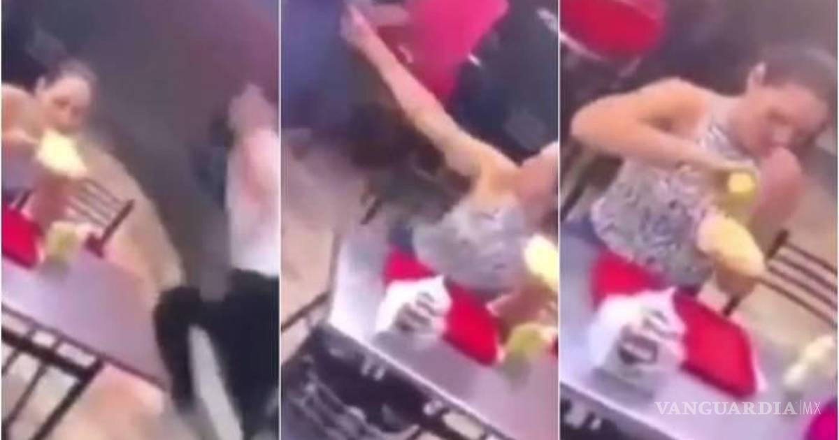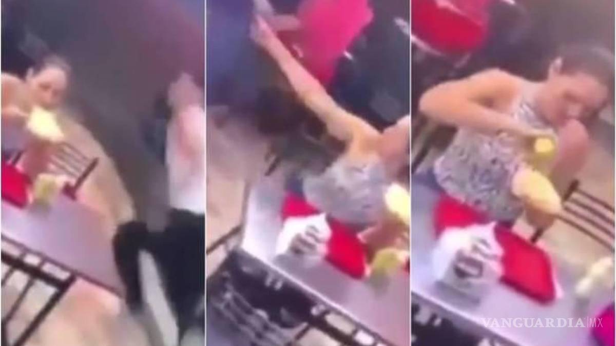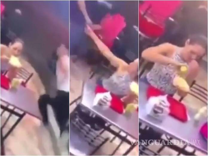 Una pareja ante la llegada de un asaltante tuvo una extraña reacción, ya que mientras el novio de la chica corre para evitar ser asaltado, la mujer se queda en la mesa y continúa comiendo tranquilamente