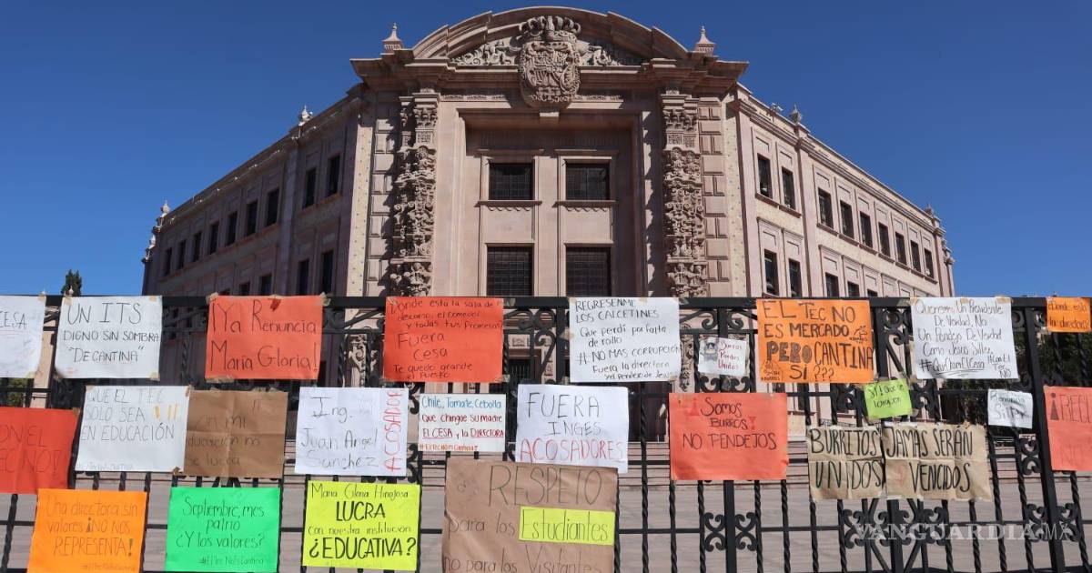 ➔ No se retirará plantón del Tec Saltillo hasta concluir con procedimiento formal para solventar pliego petitorio de estudiantes: Pese a renuncia de la directora, alumnos continuarán con su manifestación en el bulevar Venustiano Carranza.
