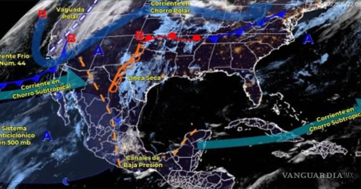 El Frente Frío No. 44 se extenderá sobre el noroeste de México y una línea seca se ubicará en los límites de Chihuahua y Coahuila, por lo que se producirán vientos fuertes con tolvaneras en el noroeste, norte y noreste de México, con rachas de viento de 70 a 90 km/h y posibles torbellinos en Chihuahua y Coahuila.