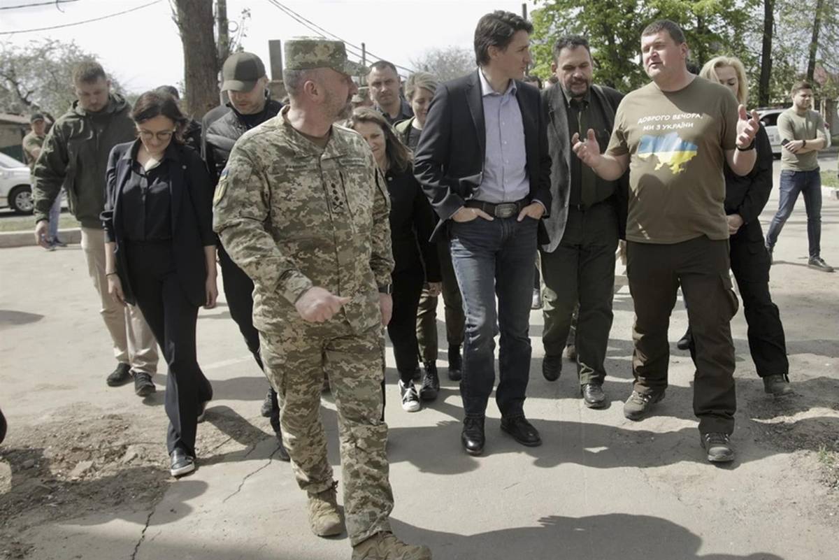 Trudeau recorrió varios puntos de esa localidad acompañado de su alcalde, Oleksandr Markushin, de acuerdo con el portal ucraniano Ukrinfrom.