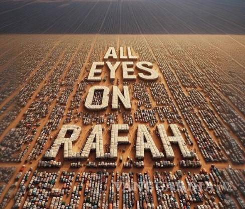 “Todos los ojos puestos en Rafah” es una imagen generada por inteligencia artificial (IA) con un eslogan que llama la atención sobre la situación en Rafah, la ciudad más al sur de la Franja de Gaza, cerca de la frontera con Egipto.