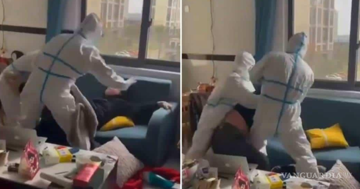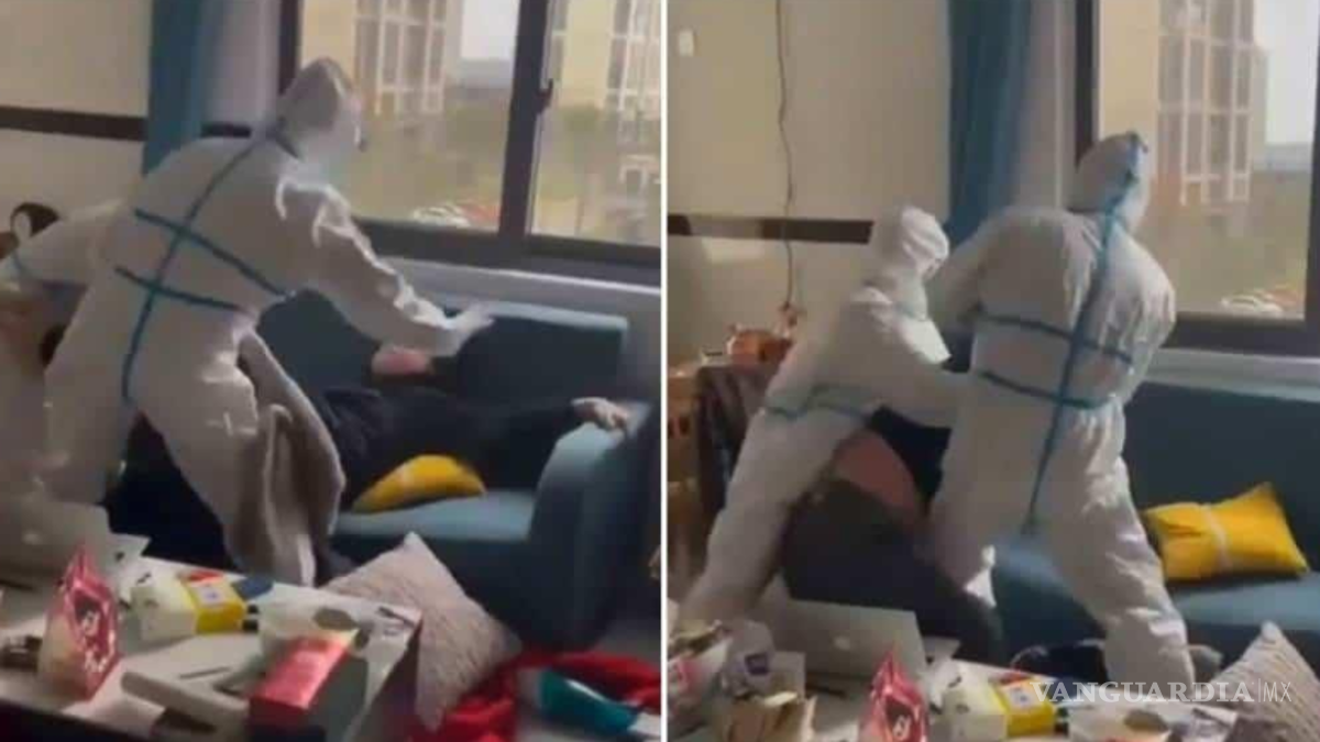 Se puede escuchar a una mujer que filma el horror que se desarrolla pidiéndoles a los oficiales de materiales peligrosos que “no sean tan violentos”, reportó The Sun. Los dos agentes del confinamiento, conocidos como “Da Bai” o Big Whites por sus uniformes, gritan “pónganse la máscara”.