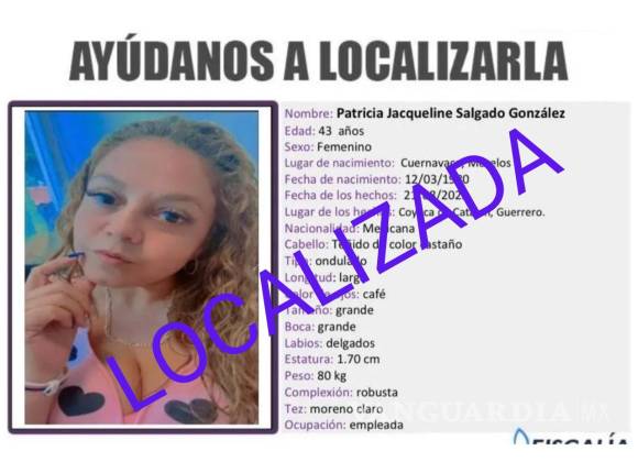 Al rededor de las 23:30 horas de la noche del martes, la Fiscalía General del Estado informó, por medio de un comunicado, la localización con vida de la funcionaria Patricia Jacqueline Salgado González, en la región de Tierra Caliente.