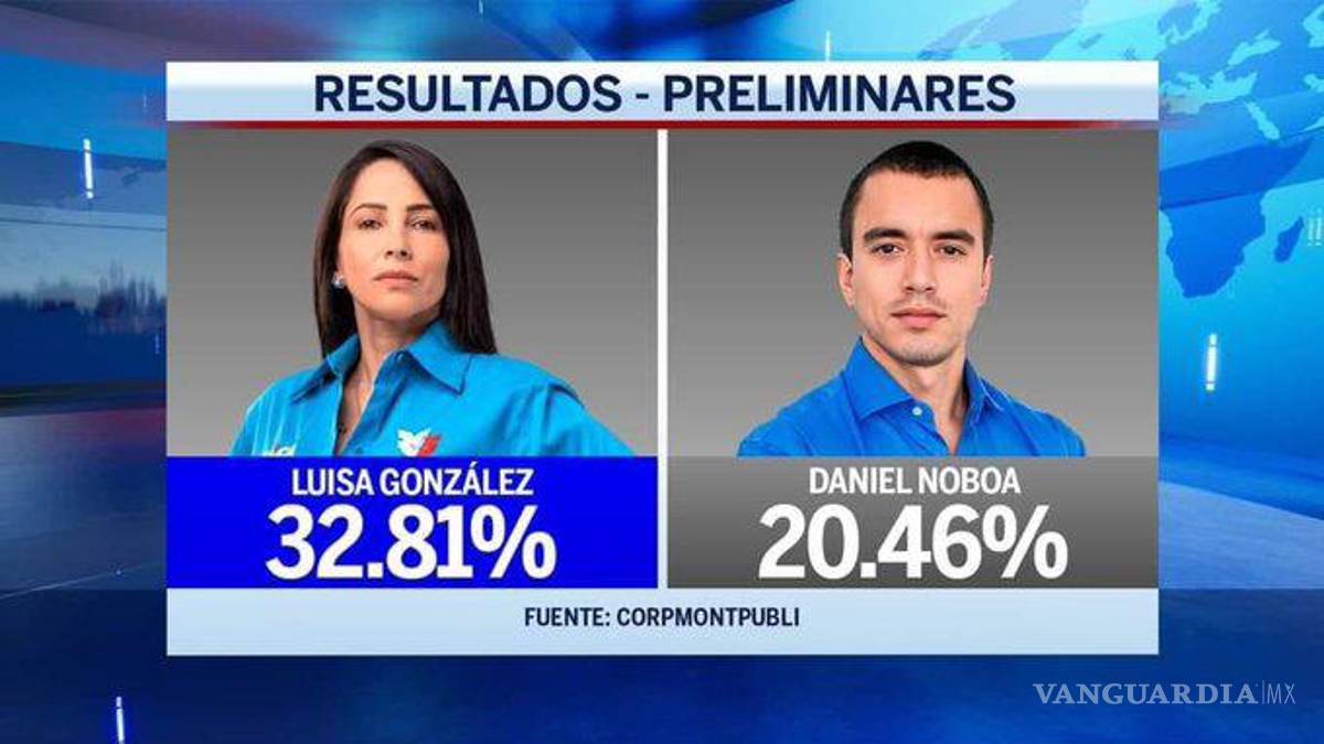 González, protegida del ex presidente Rafael Correa, lideraba la votación con un 32.9 por ciento de lo votos, seguido por el ex legislador Noboa con un 24.4 por ciento Christian Zurita, quien ocupó el lugar del asesinado Fernando Villavicencio, aparece tercero con 16.38 por ciento de las preferencias.