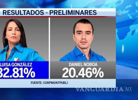 Luisa González y Daniel Noboa encabezan elecciones en Ecuador