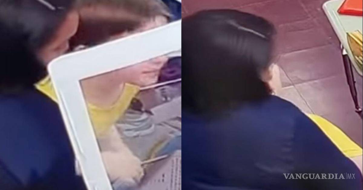 De inmediato, el menor se levanta de su pupitre e intenta hablar con su maestra para pedir auxilio.
