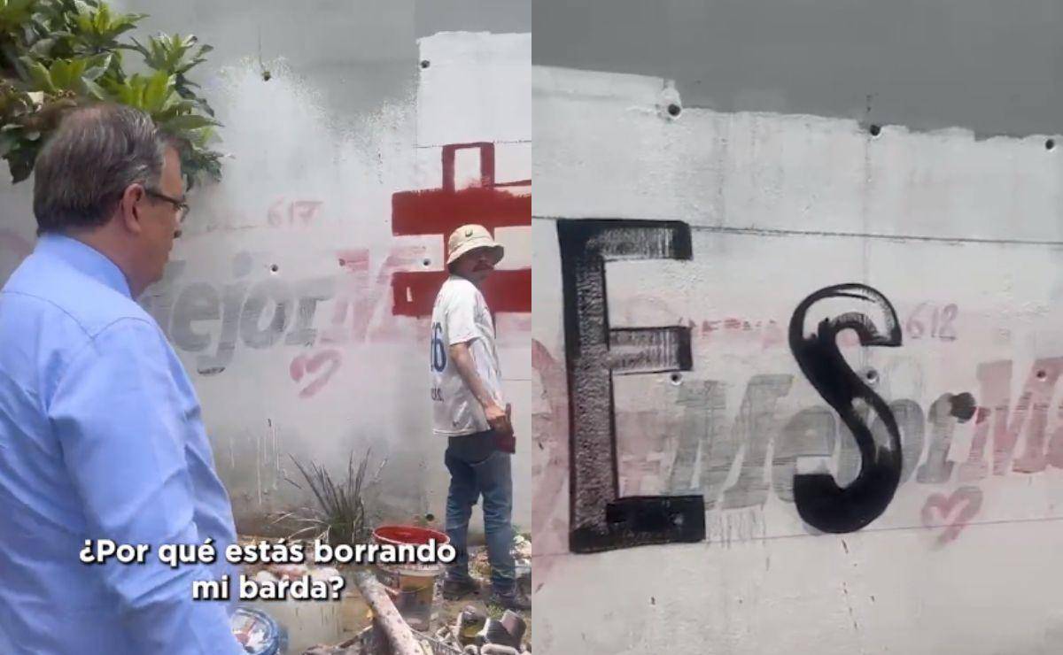 “Oye, ¿por qué estás borrando mi barda?”, dice Ebrard a las personas en la zona. Asimismo, una mujer que lo acompaña y parece ser su simpatizante, afirmó que el hecho era parte de una guerra sucia en contra del ex titular de la Secretaría de Relaciones Exteriores (SRE).