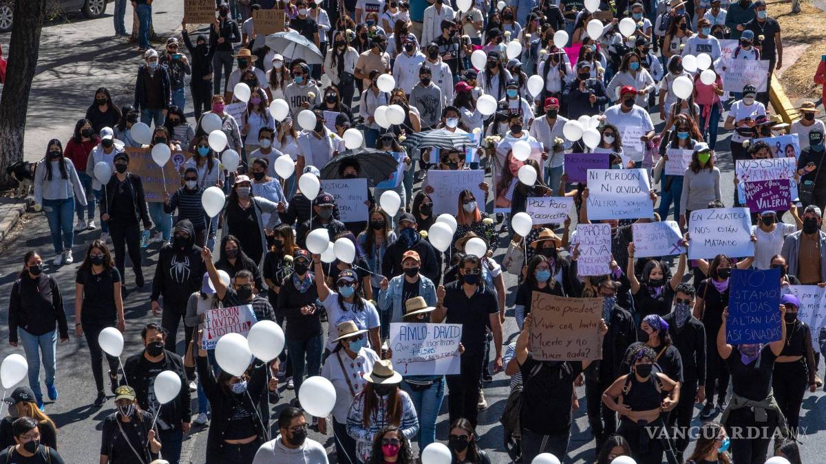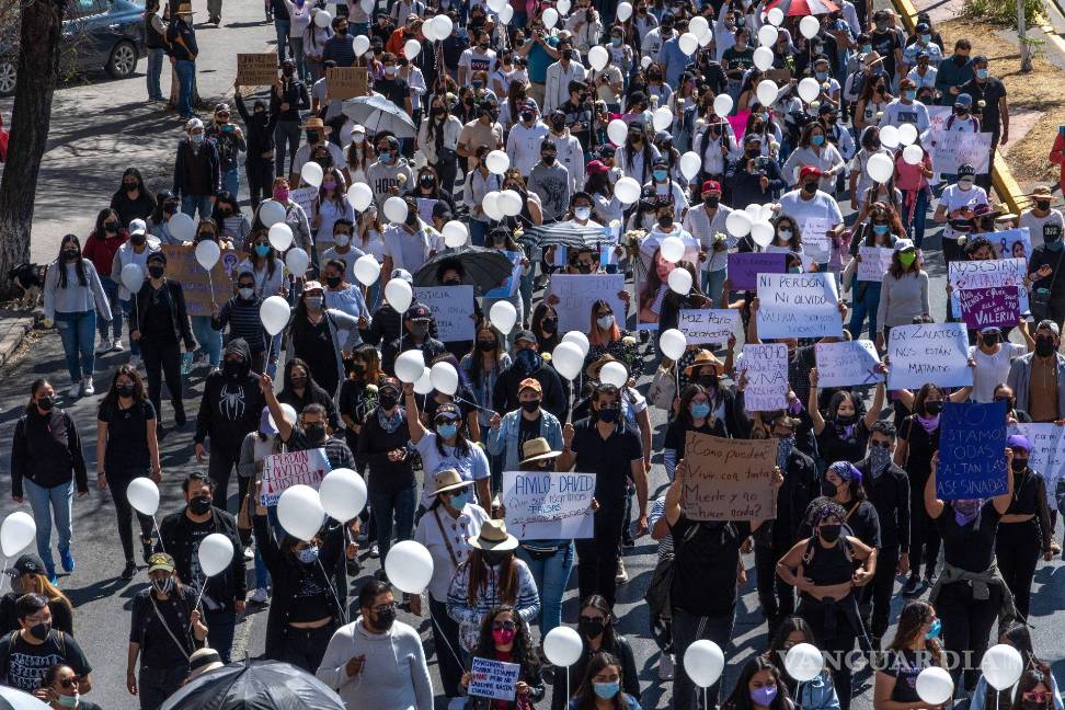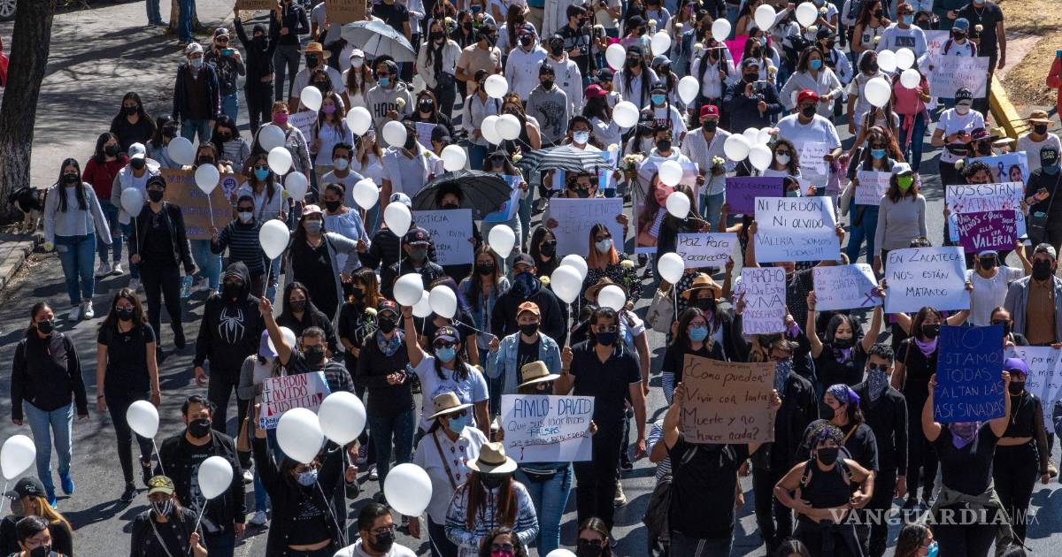 ZACATECAS, Zac.- Este sábado, un contingente del Movimiento Feminista, de las organizaciones de las personas desaparecidas y de la sociedad civil salieron a las calles para realizar la marcha contra la violencia y el regreso de la paz a Zacatecas, así como para clamar justicia por el asesinato de Valeria y los otro cuatro jóvenes que fueron asesinados por el crimen organizado.