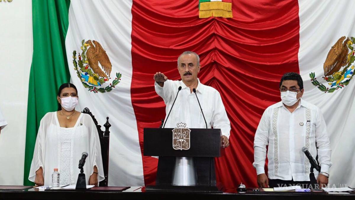VILLAHERMOSA TAB.- Por segunda ocasión en menos de cinco días, Carlos Manuel Merino Campos rindió protesta ante el Congreso de Tabasco como gobernador; ahora será interino, lo que le permitirá concluir el cargo hasta octubre de 2024, con la posibilidad de que Adán Augusto López Hernández, secretario de Gobernación, pueda regresar si así lo desea, ya que su licencia aprobada fue indefinida.