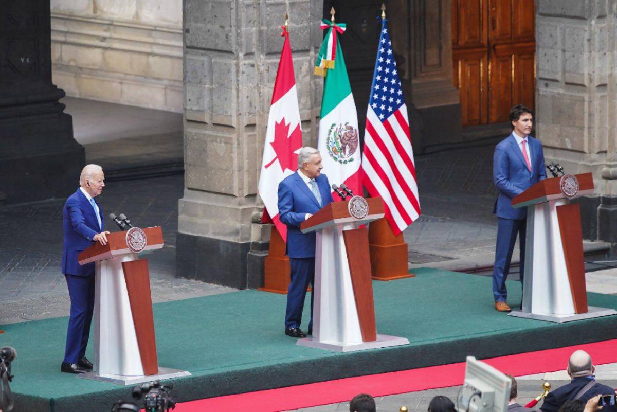 El presidente Andrés Manuel López Obrador y sus homólogos Joe Biden y Justin Trudeau se reunieron este martes en Palacio Nacional para evaluar los avances de los compromisos hechos en la IX Cumbre y para realizar nuevos para el año venidero.