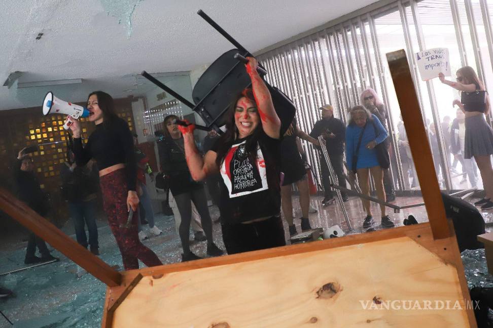 Durante la concentración, las personas realizaron pintas y rompieron los cristales de la entrada del recinto del Poder Judicial de la Ciudad de México.