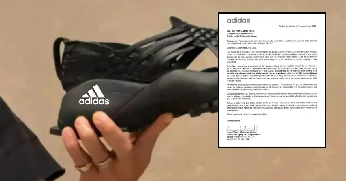 “En adidas valoramos profundamente la riqueza cultural de los pueblos originarios de México y reconocemos la relevancia del señalamiento hecho por su institución. Por ello, con voluntad plena de entablar un proceso constructivo y respetuoso, solicitamos de la manera más atenta una reunió virtual con su oficina, a la brevedad que su agenda permita, con el objetivo de dialogar de forma directa sobre los puntos planteados en su oficio y explorar, de la mano de su autoridad, los pasos que permitan avanzar hacia una reparación del daño con la comunidad zapoteca de Villa Hidalgo Yalálag”.