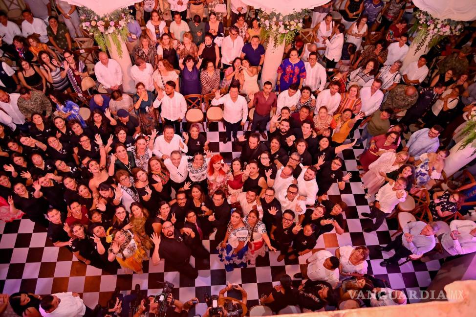 Sansores continuó con “Volver, volver” de Vicente Fernández, “Oye, abre tus ojos” de la Sonora Dinamita y “La vida es un carnaval” de Celia Cruz, para abordar el compromiso de servicio.