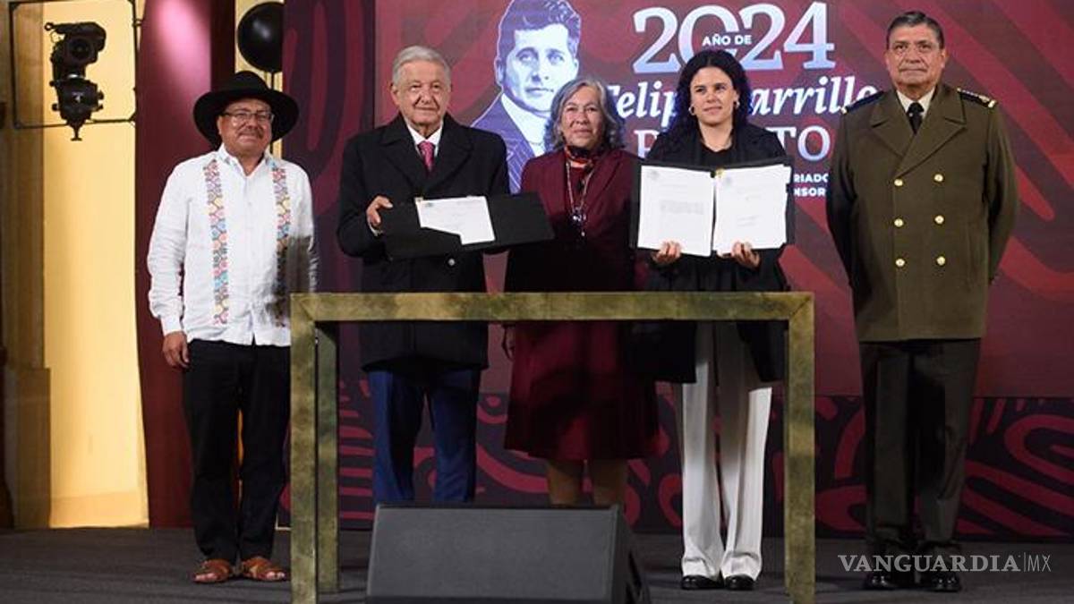 El Presidente firmó las reformas en compañía del secretario de Defensa, el general Luis Cresencio Sandoval, el titular del Instituto Nacional de Pueblos Indígenas, Adelfo Regino Montes, y la secretaria de Gobernación Luisa María Alcalde.