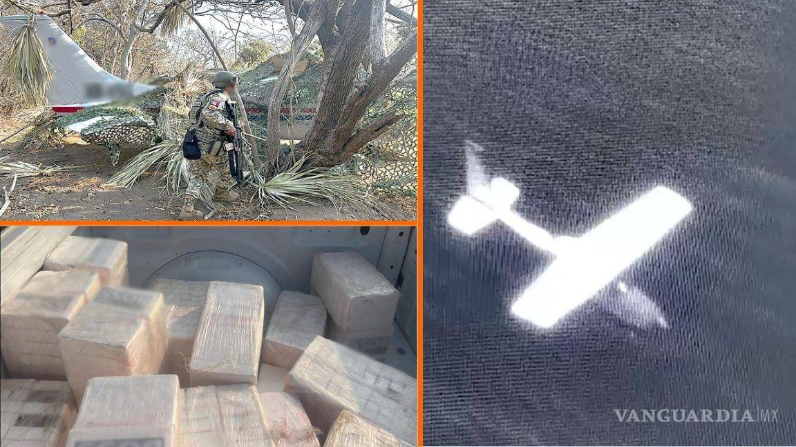 La aeronave fue localizada tras monitoreo de la Sedena y la Guardia Nacional; droga y vehículos quedaron bajo resguardo ministerial.