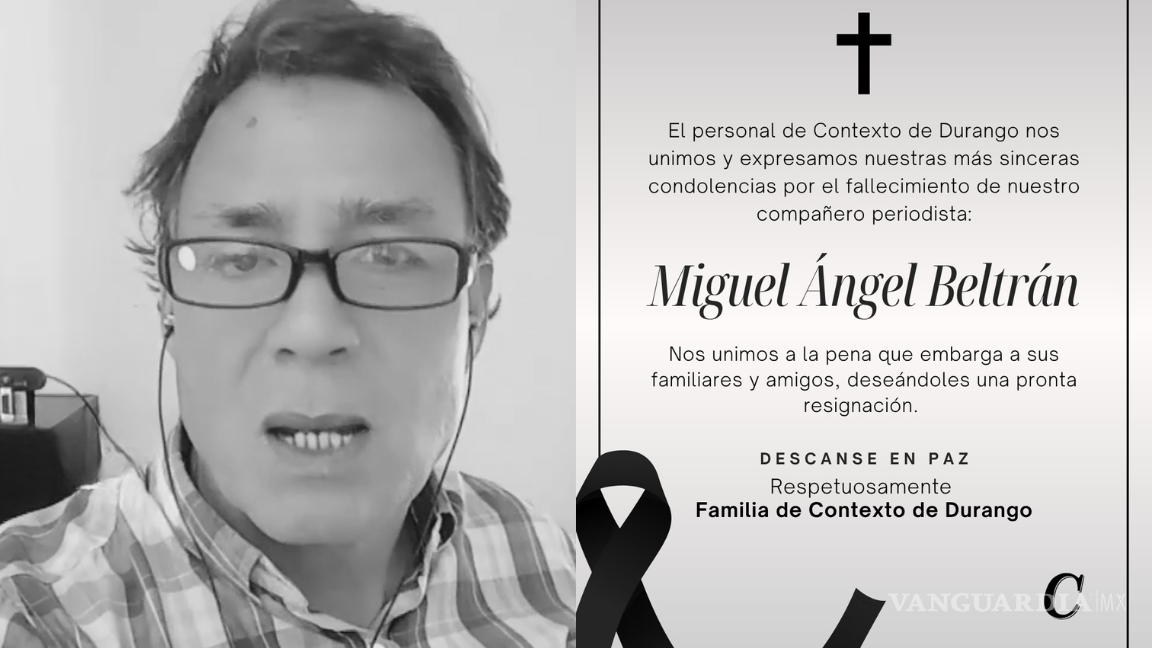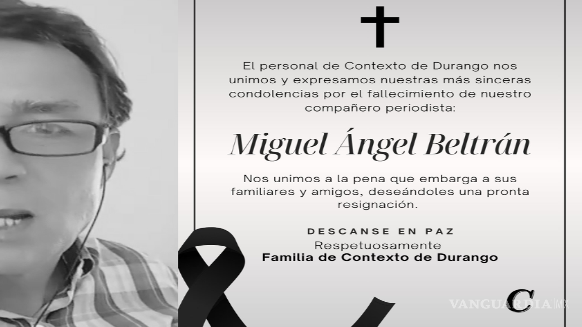 “Lamentamos profundamente el fallecimiento de nuestro compañero periodista, Miguel Ángel Beltrán.El equipo de Contexto de Durango se une a la pena que embarga a su familia y amigos, deseándoles fortaleza y pronta resignación ante esta irreparable pérdida.Descansa en paz.”
