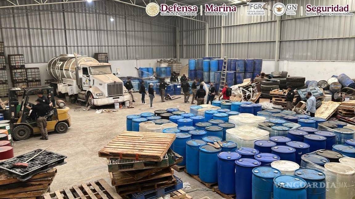 Autoridades decomisaron 7 mil litros de hidrocarburo, precursores químicos y sustancias ilícitas en Durango utilizados para la producción de drogas sintéticas