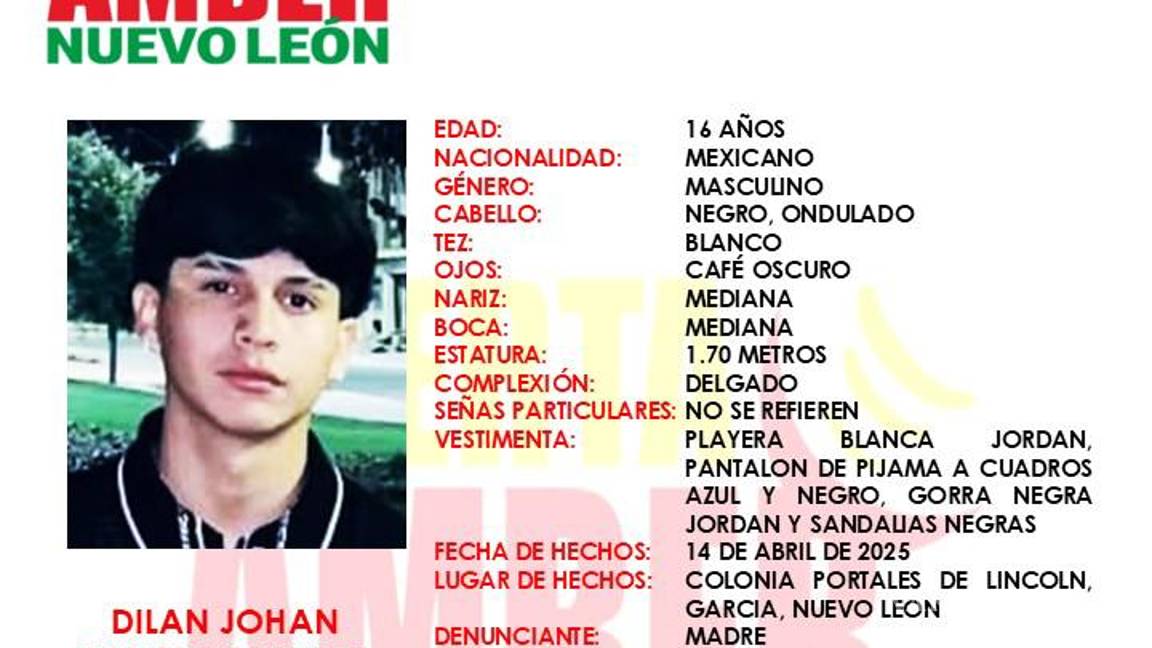 De acuerdo con la Alerta Amber activada por su caso Dilan Johan tiene el cabello negro ondulado, es de tez blanca, ojos café oscuros, nariz y boca mediana, mide 1.70 metros, es de complexión delgada. Además, vestía una playera blanca Jordan, pantalón de pijama a cuadros azul y negro, una gorra negra Jordan y sandalias negras.