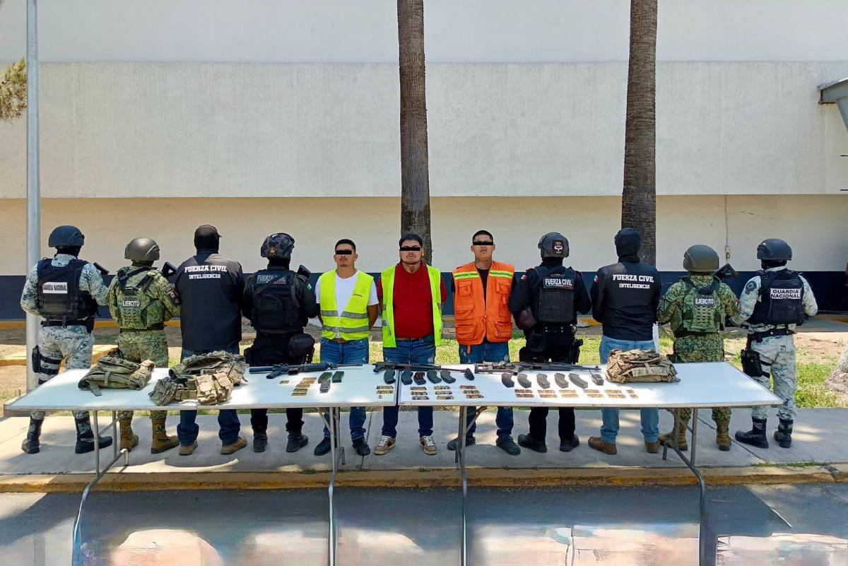 Los hombres se identificaron como: Hugo “N”, de 26 años de edad, Héctor “N” , de 22 años y Leonel “N”, de 26 años a quienes tras una revisión les encontraron tres armas largas abastecidas con un total de 61 municiones, tres chalecos balísticos, nueve cargadores abastecidos con 215 balas, tres radiofrecuencias, una fornitura y 24 dosis de polvo blanco parecido a la cocaína.
