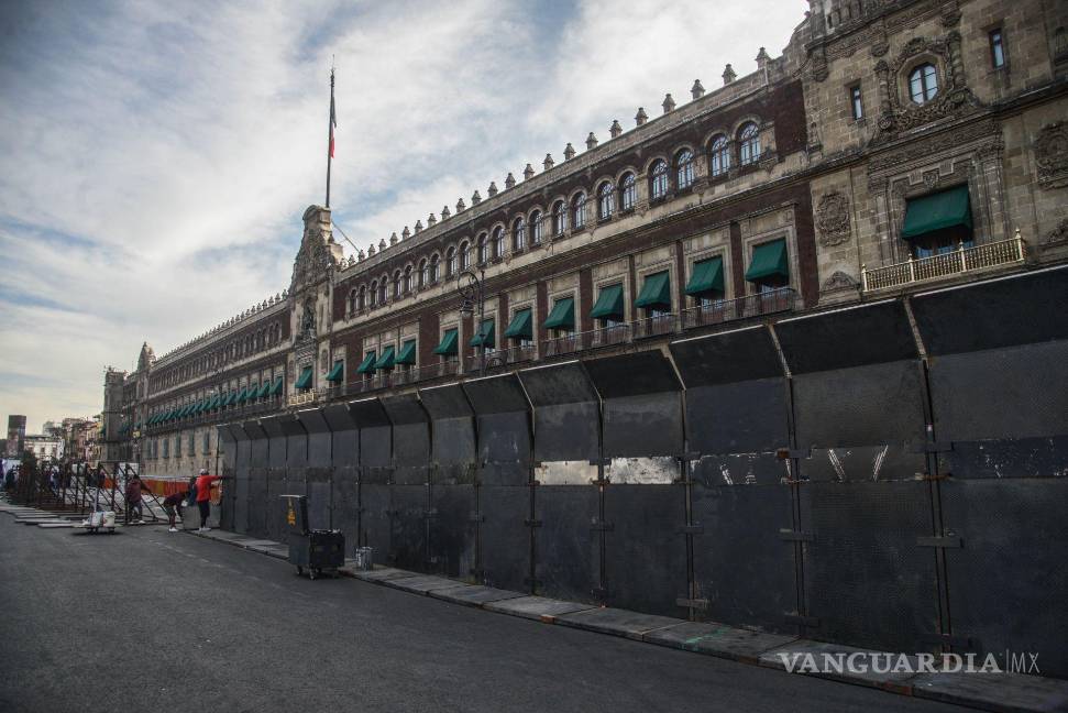 Elementos de la Secretaría de Obras de la CDMX prepararon el blindaje para el Palacio Nacional, la Catedral Metropolitana y el Palacio de Bellas Artes