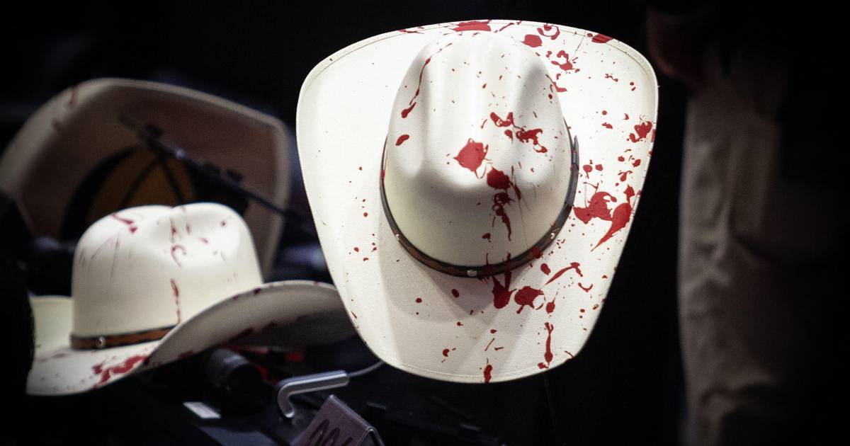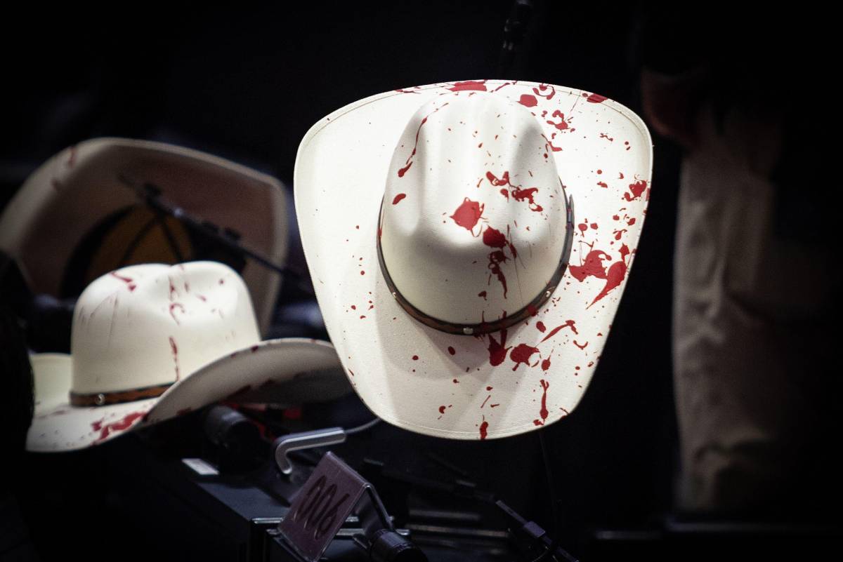 Legisladores del PRI llegaron al Pleno con sombreros blancos manchados de pintura roja, simulando sangre, en referencia al característico sombrero que usaba el edil independiente que fue ejecutado.