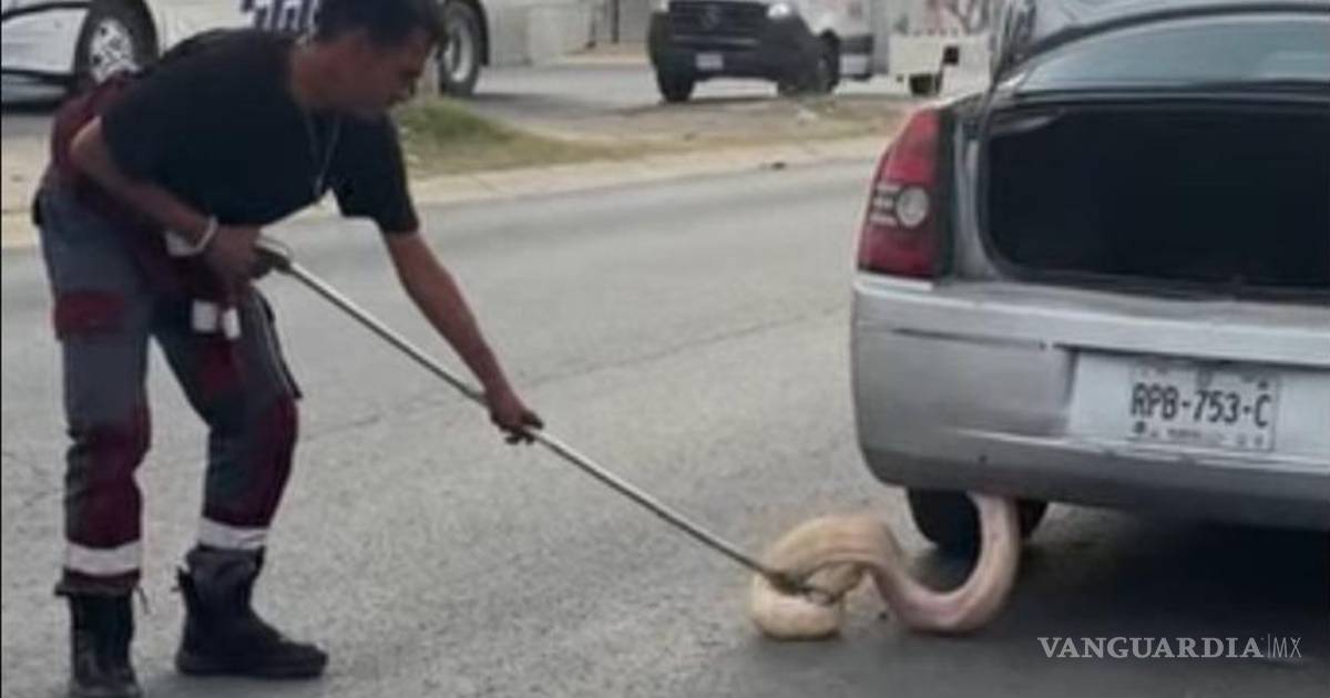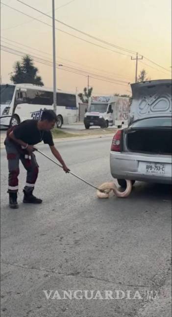 Se reportó que un ciudadano se percató de la serpiente pitón en la cajuela del vehículo de una mujer, quien inmediatamente se orilló y descendió del coche