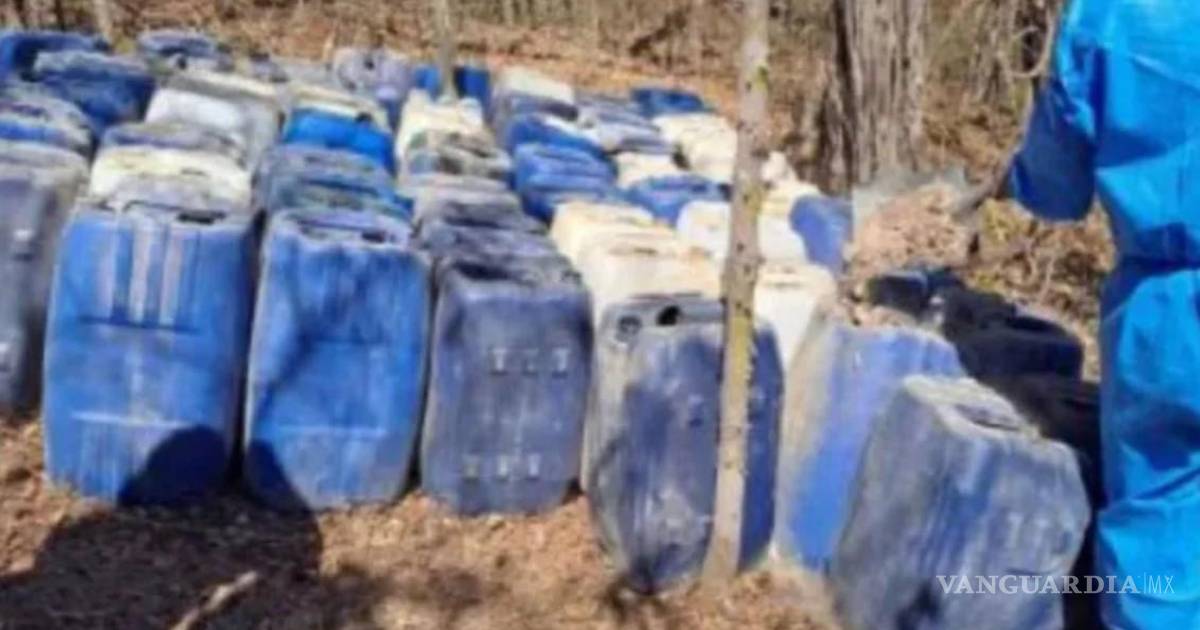 Con auxilio y personal terrestre, elementos navales ubicaron en la comunidad de Bacatá, en el municipio de Cósala, dos centros de procesamiento para drogas sintéticas. En el lugar encontraron contenedores con diversos químicos.