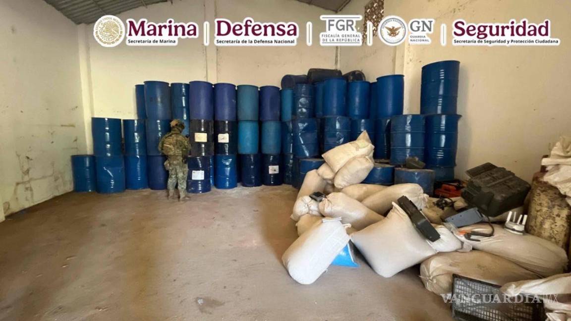 Las autoridades señalaron que, en dos acciones distintas, se logró la localización e inhabilitación tanto de una bodega con precursores químicos como de un campamento clandestino empleados para la producción de drogas sintéticas.