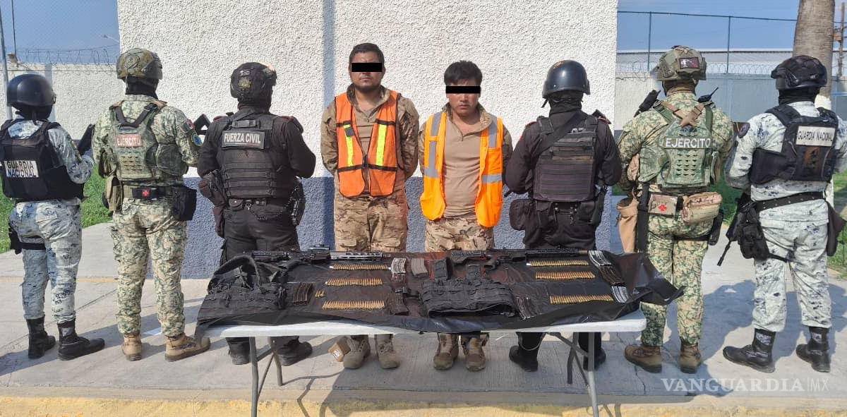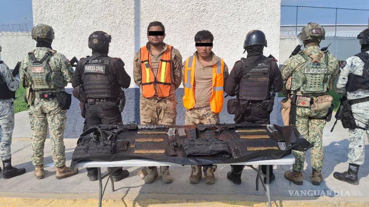 Los efectivos se aproximaron y pudieron interceptar a los sospechosos que se identificaron como: César “N” de 28 años y Raúl “N”, de 25, a quienes se les decomisaron dos armas largas abastecidas con un total de 55 balas, dos pecheras con porta cargadores, seis cargadores con 136 balas y uno desabastecido.