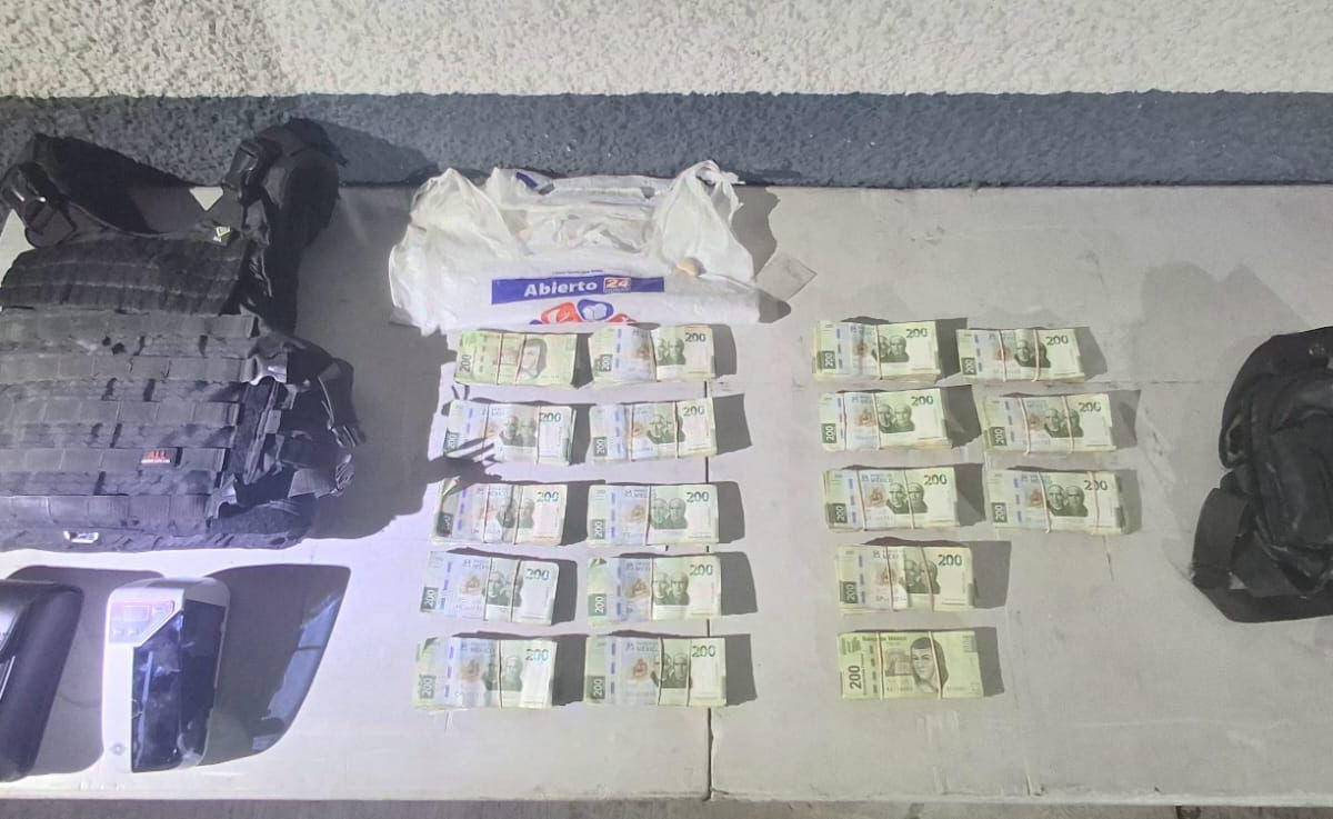 Al aproximarse para brindar apoyo, los policías observaron el interior del automóvil diversos paquetes con grandes cantidades de dinero motivo por el cual cuestionaron a los tripulantes de la unidad.