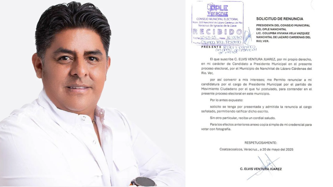 El candidato del Partido Movimiento Ciudadano a la alcaldía veracruzana de Nanchital, Elvis Ventura Juárez, renunció a la postulación tras ser involucrado en un narcovideo.