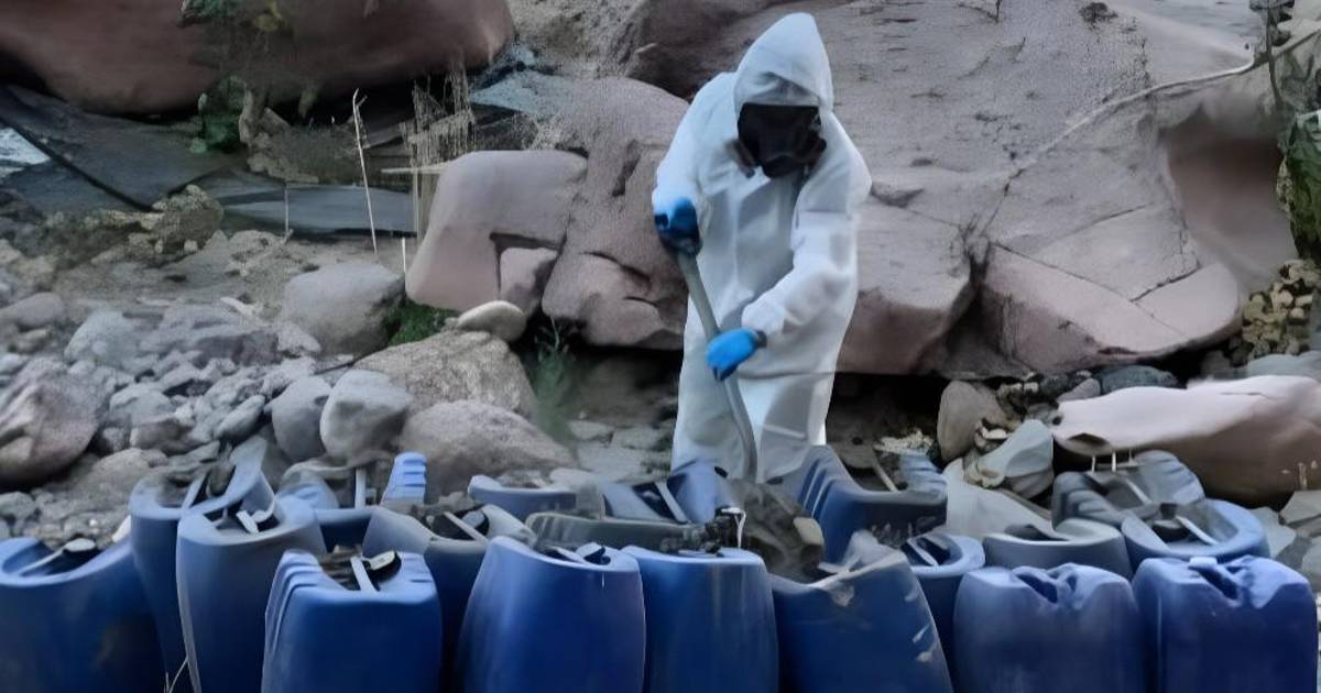 En estos lugares encontraron bidones, barriles, costales, condensadores, centrifugadores, sustancias químicas, mezcladoras y reactores.