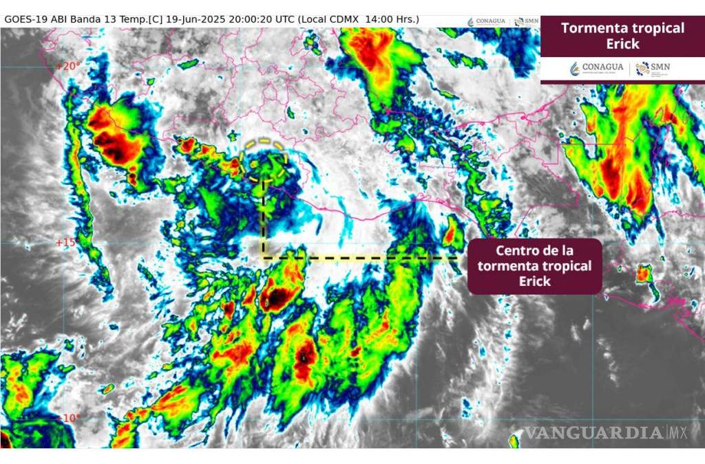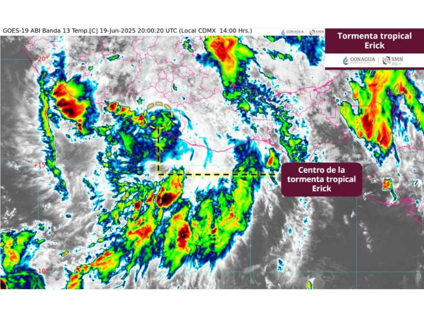 El, hasta hace unas horas, huracán de categoría 3 ‘Erick’ se ha degradado a Tormenta Tropical sobre el estado de Guerrero, tras tocar tierra en Oaxaca durante las primeras horas del jueves 19 de junio, de acuerdo con el Servicio Meteorológico Nacional (SMN) de la Comisión Nacional del Agua (Conagua).
