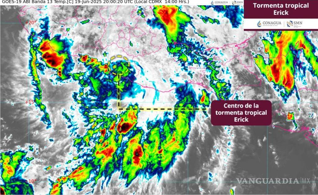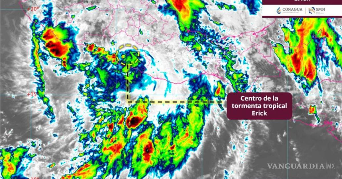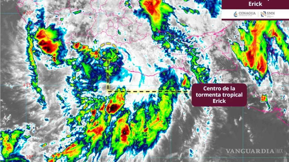 A pesar de que ‘Erick’ se ha debilitado conforme se desplaza entierra, sus bandas nubosas mantendrán probabilidad de lluvias intensas a puntuales torrenciales en Puebla (sur), Veracruz (sur), Guerrero, Oaxaca y Chiapas; intensas rachas de viento y oleaje elevado en sus costas.