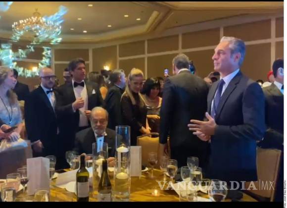 Sentado en una de las mesas principales del evento en el Omni Shoreham, Slim estuvo presente durante la parte inicial del baile junto a su hijo Carlos Slim Domit, presidente del Consejo de América Móvil, Francisco Cervantes, presidente del Consejo Coordinador Empresarial, así como el actor Eduardo Verástegui.