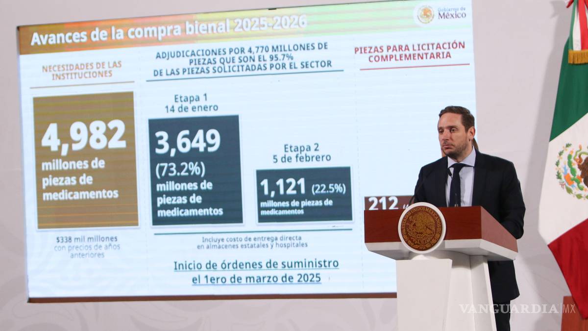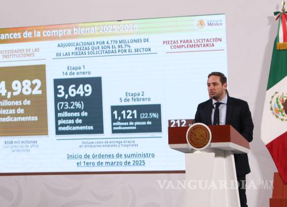 Detalló que primero se dio la formalización de los contratos entre instituciones y la industria farmacéutica; posteriormente, del 21 de febrero al 2 de marzo se liberarán las órdenes de suministro masivas de las instituciones y del 3 al 15 de marzo será el inicio de recepción de insumos en hospitales y almacenes de todos los estados.