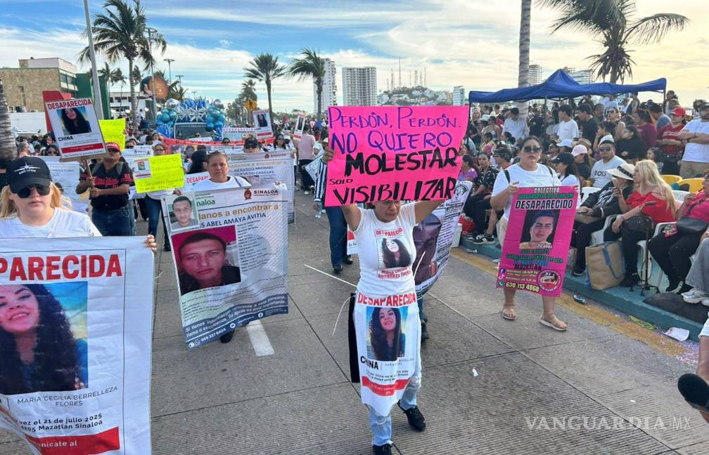 Familias de personas desaparecidas en Sinaloa se integraron en contingente del desfile del Carnaval de Mazatlán, en el Monumento al Pescador, para visibilizar la problemática a nivel nacional e internacional con mantas, cartulinas y lonas con fichas de búsqueda.