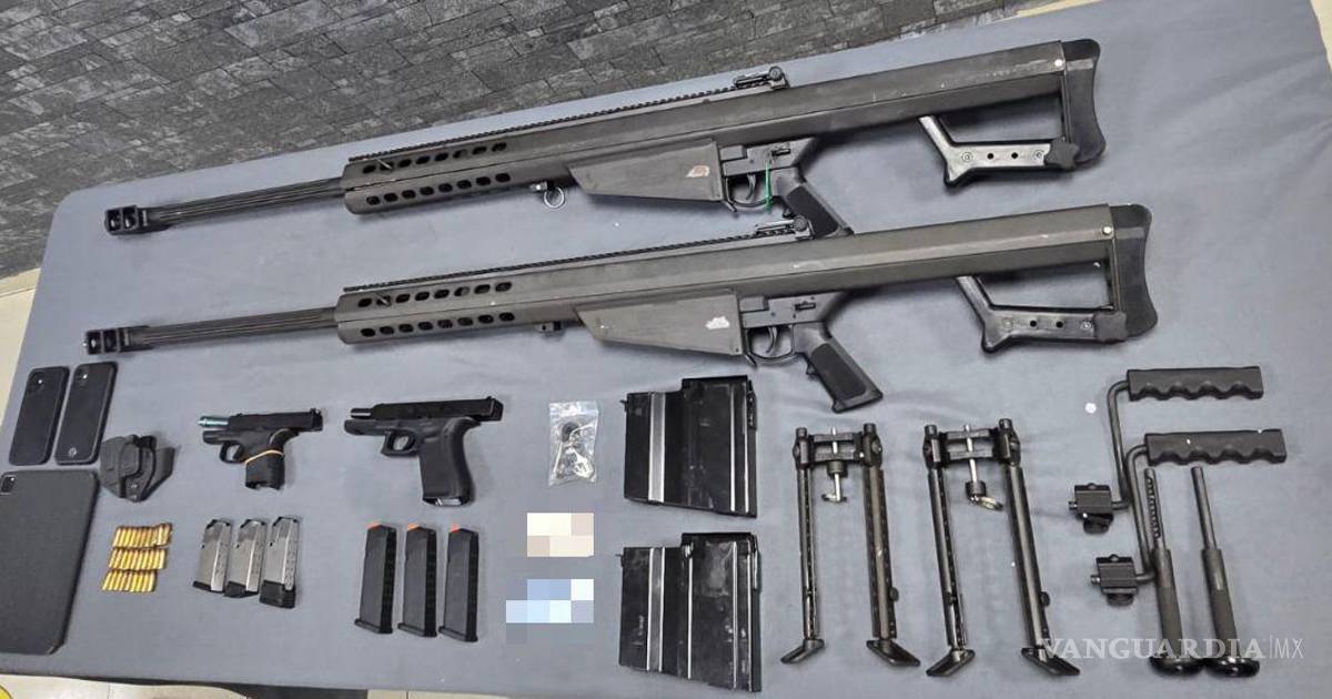 El hombre se desplazaba en un vehículo con placas del estado de Guerrero y en el mismo detectaron cuatro armas de fuego calibre .50 y dos calibre 9 milímetros, así como 29 cartuchos útiles de este mismo calibres, dos bípodes, dos asas de transporte para arma de fuego y una funda para arma de fuego tipo pistola.