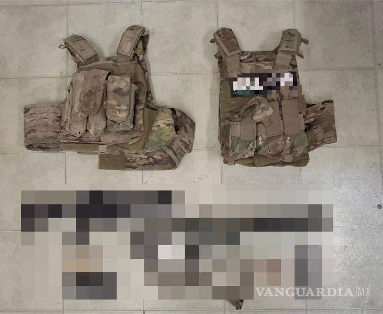 A la altura de la rúa Sandía, los elementos encontraron tiradas en el suelo: dos armas largas abastecidas con 23 balas y dos chalecos balísticos.
