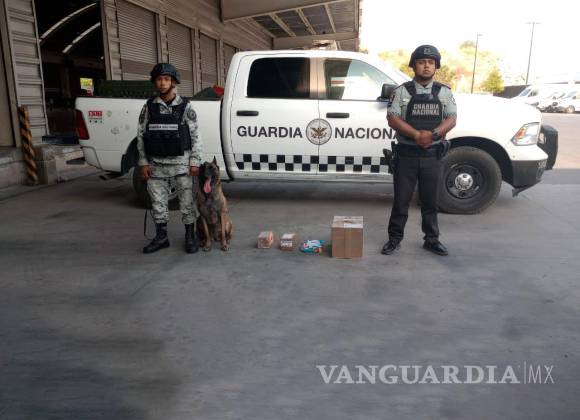 “Con el apoyo de un binomio canino revisaron los paquetes, donde detectaron anomalías en cuatro cajas de cartón y en su interior localizaron paquetes con el enervante”, detalló el escrito.