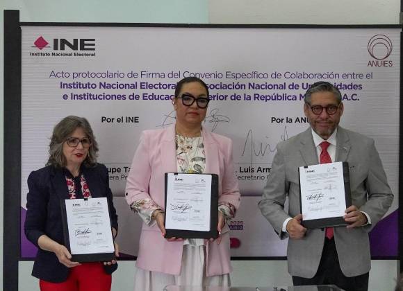 El Instituto Nacional Electoral (INE) y la Asociación Nacional de Universidades e Instituciones de Educación Superior (ANUIES) de la República Mexicana firmaron un convenio de colaboración para promover la difusión de derechos político-electorales y otras actividades, de cara a la elección del Poder Judicial.