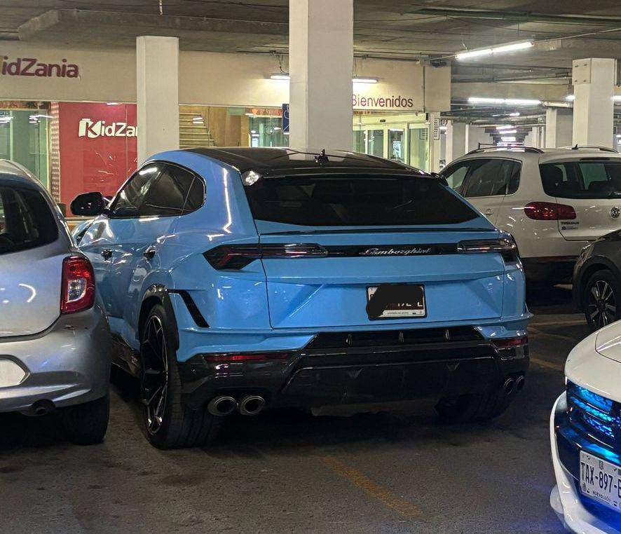 La Lamborghini Urus azul celeste robada al creador de contenido Alfredo Valenzuela fue localizada abandonada en el estacionamiento