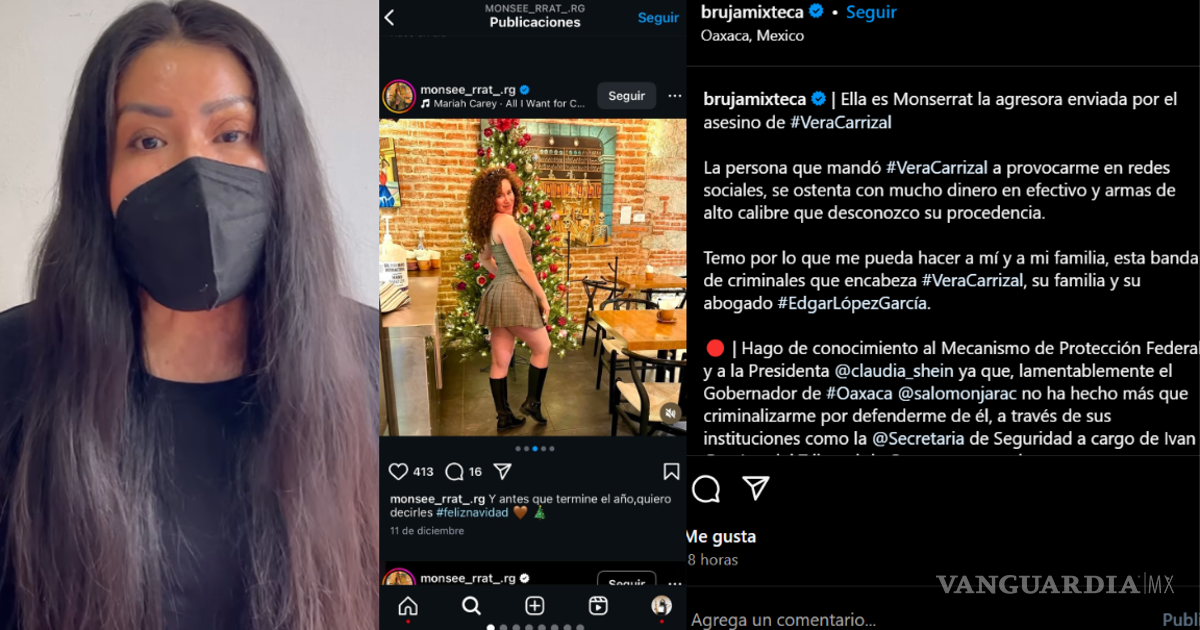 En un mensaje público, María Elena escribió: “Ella es Monserrat, la agresora enviada por el asesino de Vera Carrizal. La persona que mandó Vera Carrizal a provocarme. En redes sociales se ostenta con mucho dinero en efectivo y armas de alto calibre que desconozco su procedencia.”