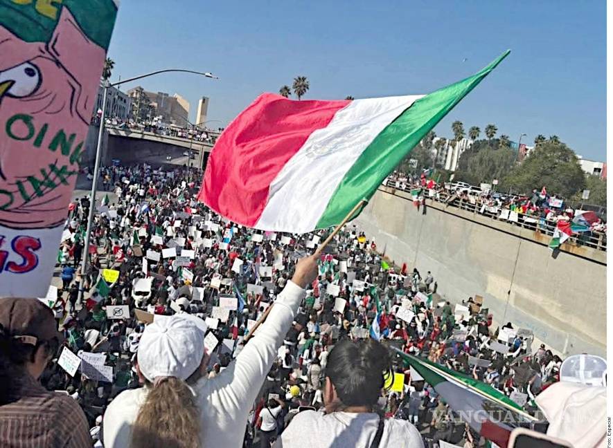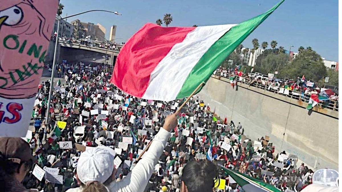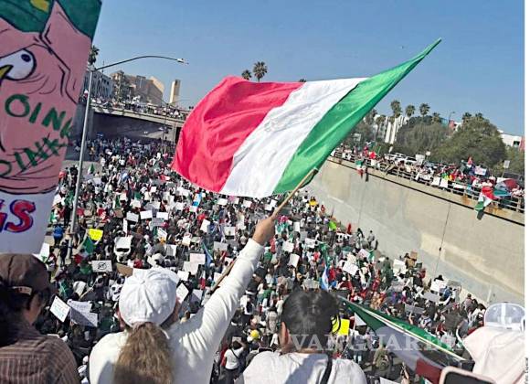 Miles de personas salieron con banderas de México y de otros países latinoamericanos para protestar en Los Ángeles, California, contra las políticas de deportación del Presidente de Estados Unidos, Donald Trump.
