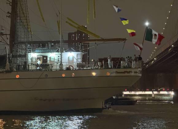 Mueren 2 tras choque de buque mexicano con puente de Brooklyn, en Nueva York
